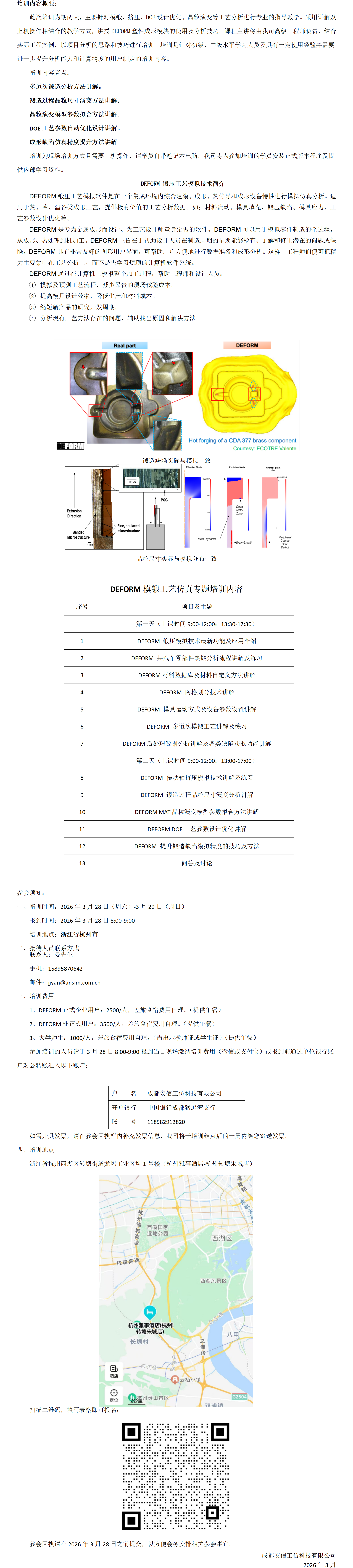 2026年DEFORM模锻工艺仿真专题培训-杭州站(3.28-3.29)